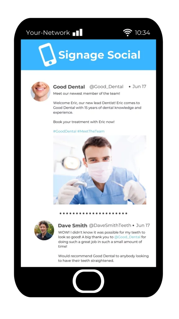 Another great idea for your waiting room screen is referral content. It is extremely likely that those waiting in your waiting room are current patients. These patients are likely to know other people who need dental services like them. Here you can share referral orientate content such as “25% off your treatment when you sign up a friend”. This can really encourage patients to bring in business for you, growing your patient base and increasing revenue.